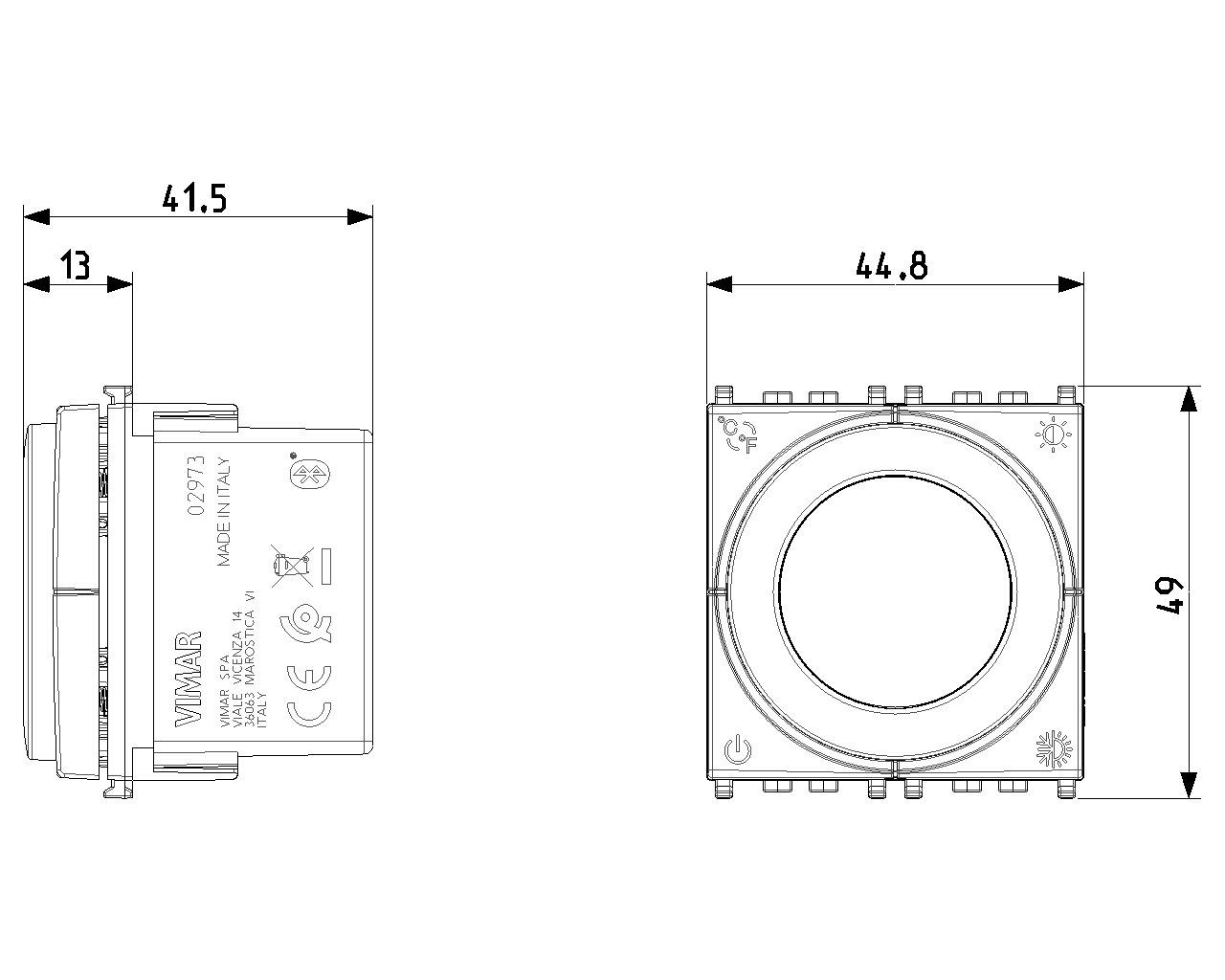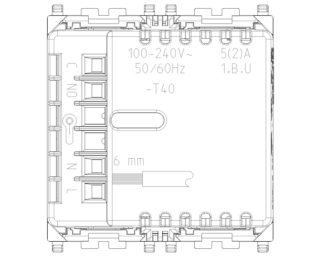 Thermostat mit Drehregler und Relaisausgang 5(2) A 240 V~, IoT-Technologie mit Standard Bluetooth Technologie 5.0 für die Realisierung des Mesh-Systems View Wireless, 1 Eingang für Außentemperaturfühler, Spannungsversorgung 100-240 V~ 50/60 Hz, Heizung und Kühlung in ON/OFF- und PID-Regelung, Temperaturregler der Klasse I (Beitrag 1%) in ON/OFF-Regelung, der Klasse IV (Beitrag 2%) in PID-Regelung, weiße LED-Hintergrundbeleuchtung mit Helligkeitsregelung, Spannungsversorgung 100-240 V 50/60 Hz, grau- 2 Module. Zu ergänzen mit Abdeckrahmen Eikon, Arké, Plana und für Idea mit bestimmtem Rahmen 16723