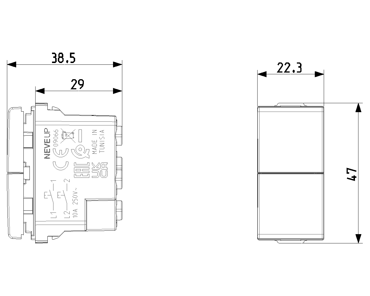 Zwei getrennte Taster 1P NO+NO10A carb.m