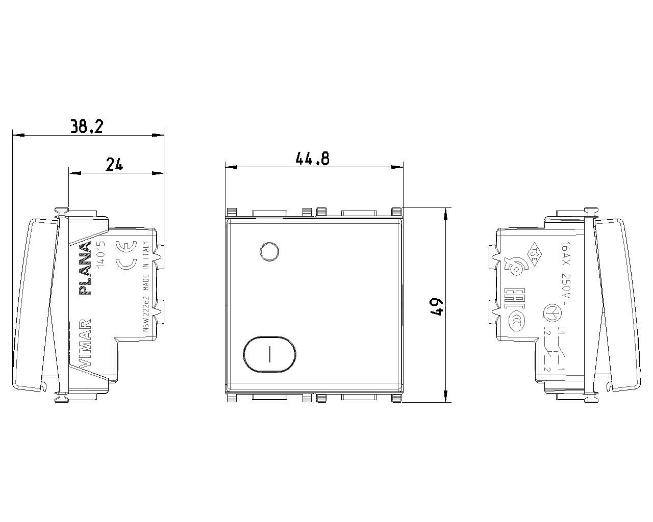 Ausschalter 2P 16 AX 250 V~, beleuchtbar