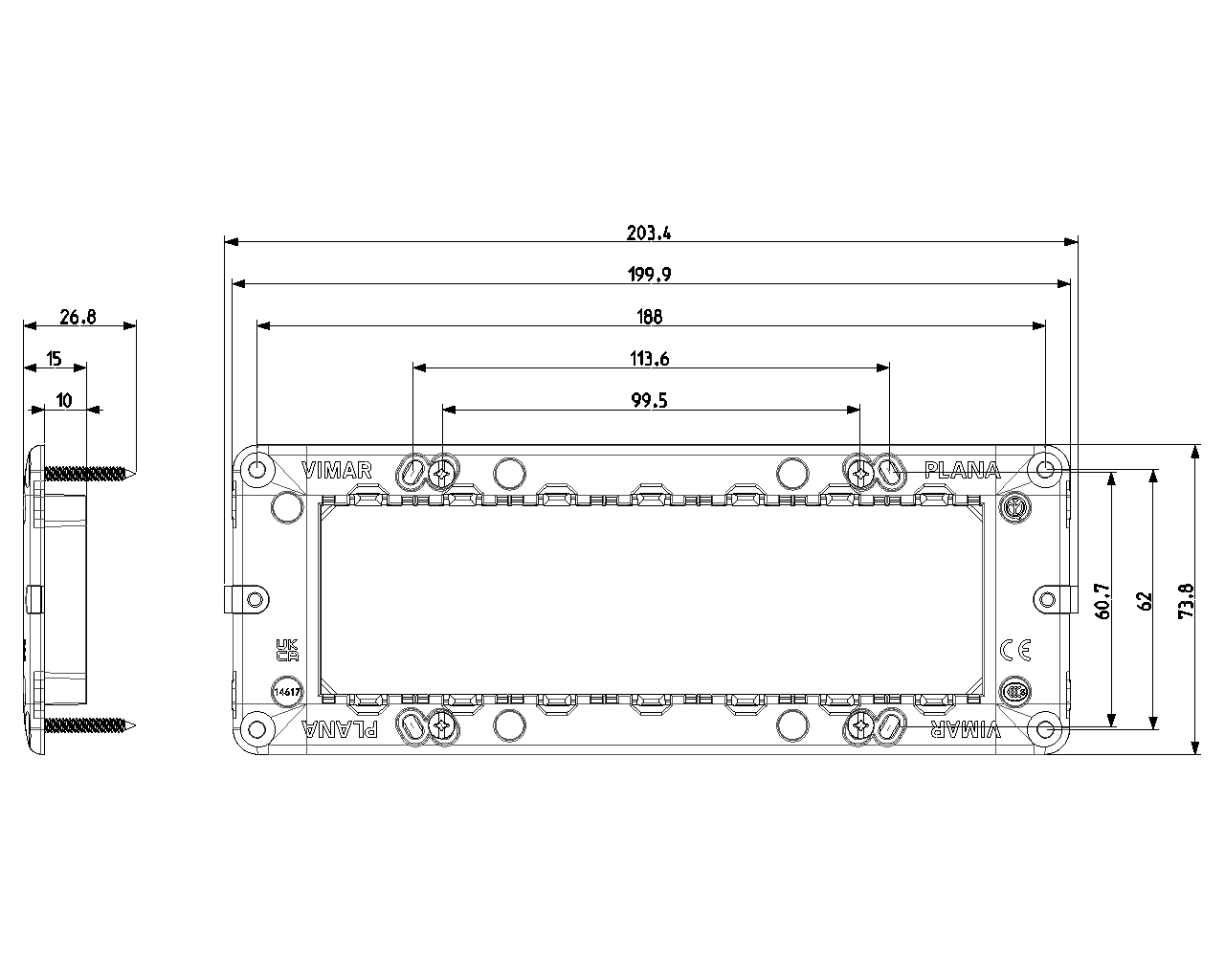 Montagerahmen 7 Module, mit Schrauben, für Dosen 6/7 Module