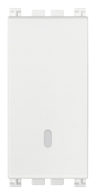 Schalter 1P 10 AX 250 V~, Steckklemmen, mit Beleuchtung, austauschbare Taste, weiß. Max. 100 W für Lampen mit integriertem Vorschaltgerät (IEC 60669-1:2017)