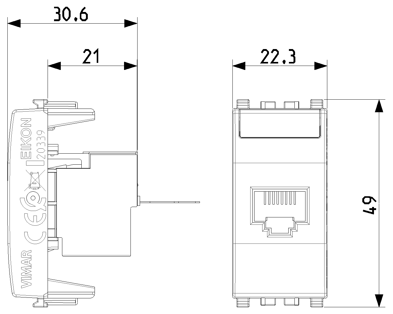 Vimar behält sich das Recht vor, jederzeit und ohne Vorankündigung die Merkmale der gemeldeten Produkte zu ändern. Die Installation muss durch Fachpersonal gemäß den im Anwendungsland des Geräts geltenden Vorschriften zur Installation elektrischen Materials erfolgen. Für die Nutzungsbedingungen der im Produktblatt enthaltenen Informationen verweisen wir auf Condizioni di utilizzo.