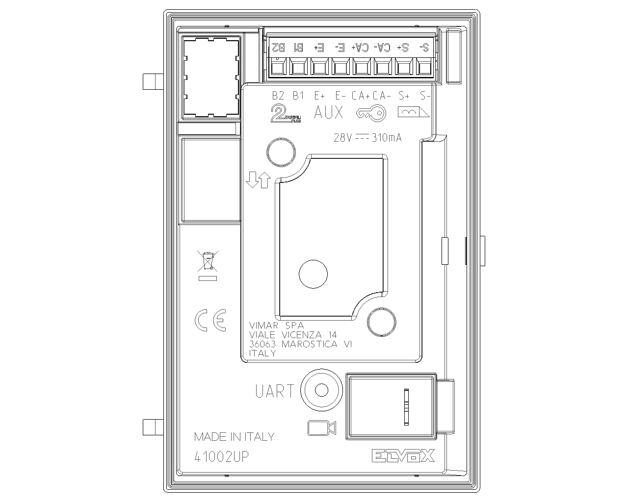 Vimar behält sich das Recht vor, jederzeit und ohne Vorankündigung die Merkmale der gemeldeten Produkte zu ändern. Die Installation muss durch Fachpersonal gemäß den im Anwendungsland des Geräts geltenden Vorschriften zur Installation elektrischen Materials erfolgen. Für die Nutzungsbedingungen der im Produktblatt enthaltenen Informationen verweisen wir auf Nutzungsbedingungen.