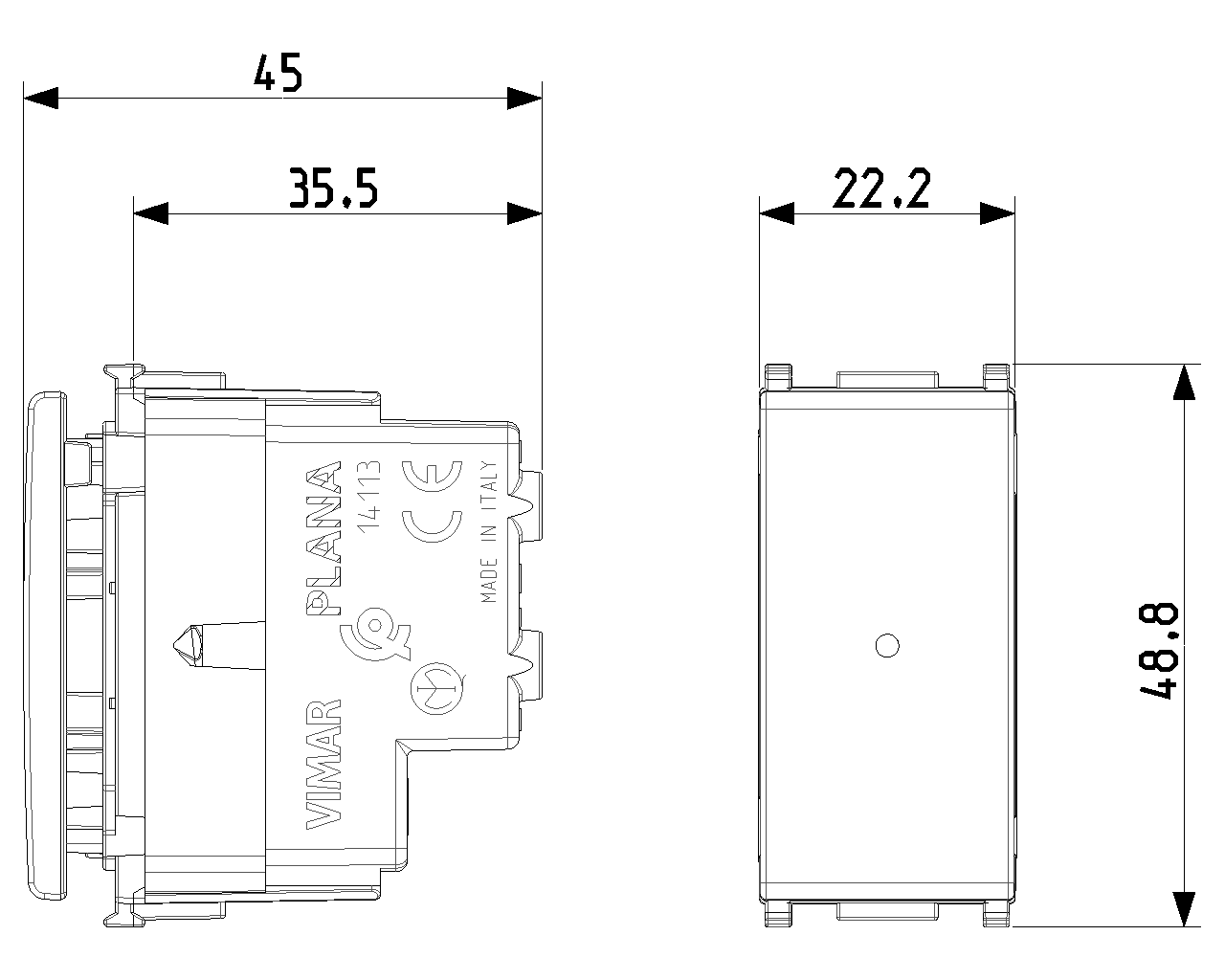 Modular device for domestic switching devices