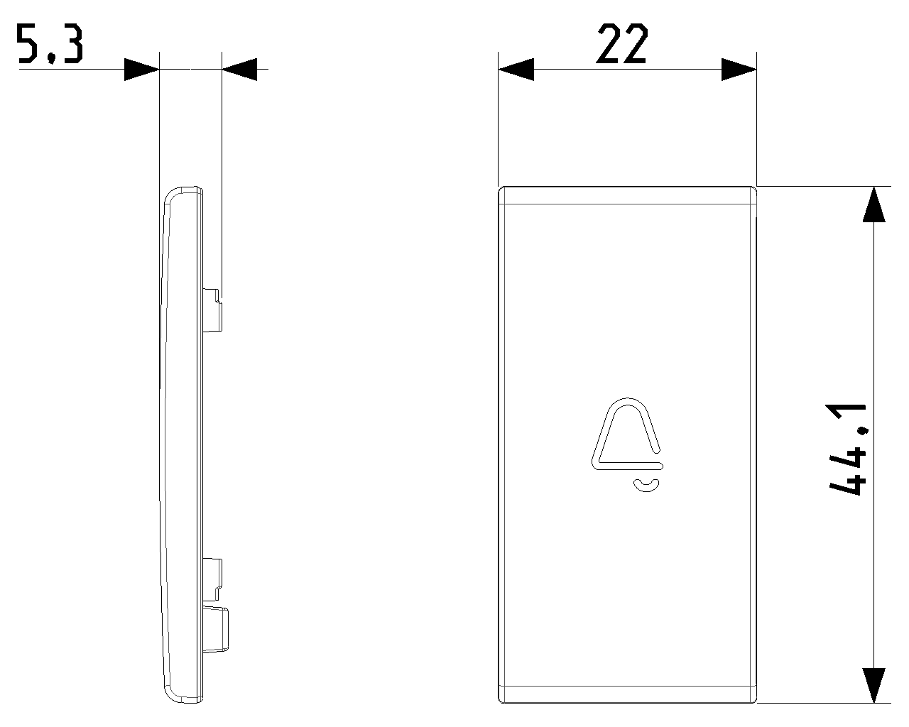 Ανταλλάξιμο πλήκτρο 1 στοιχείου για αξονικούς διακόπτες, φωτιζόμενο σύμβολο κουδουνιού, λευκό