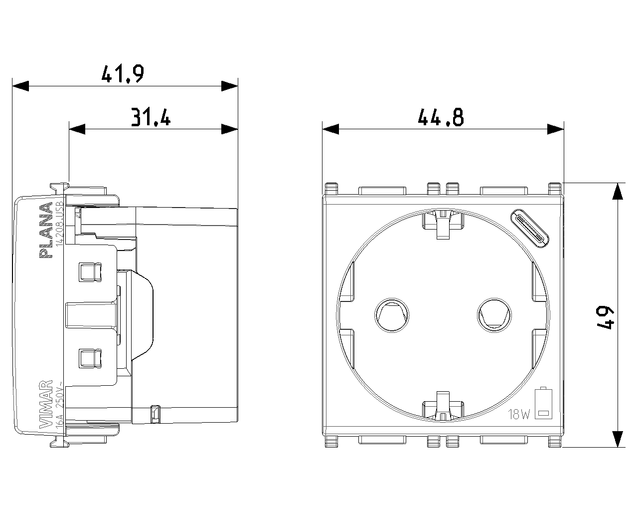 Πρίζα SICURY 2P+E 16A DE+USBC 18WSilver