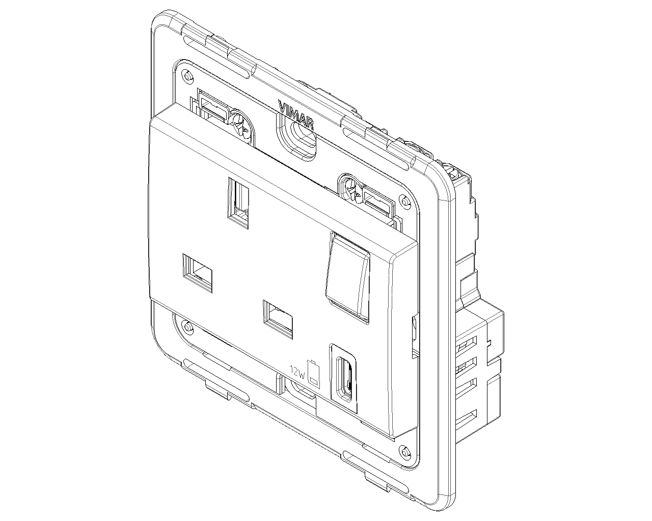 Πρίζα SICURY 2P+E 13 A 250 V~ αγγλικού προτύπου, με διακόπτη 2P με κόκκινη γραμμή και έξοδο USB τύπου C, στήριγμα για εγκατάσταση σε τετράγωνα κουτιά BS, συμπληρώνεται με πλαίσιο 3 στοιχείων BS, Silver