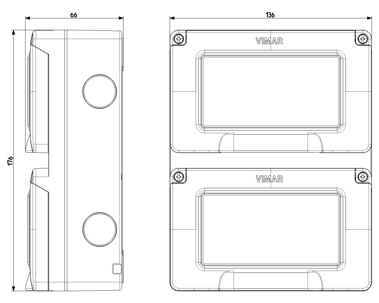 Eπίτοιχο κουτί 8 (4+4)-module για κάθετη τοποθέτηση, IP55, για μηχανισμούς σειράς Plana