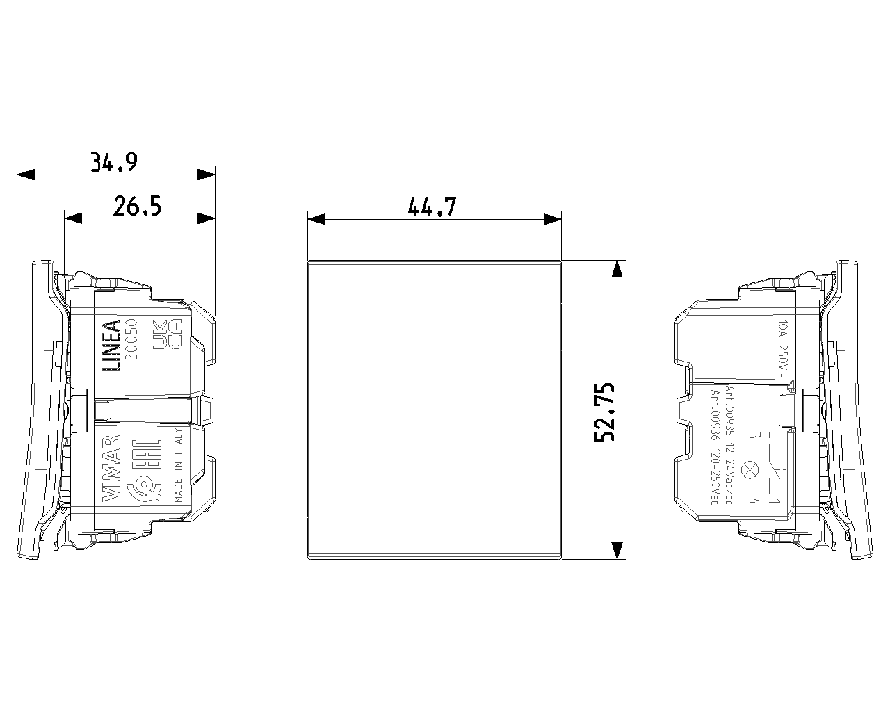 Πλήκτρο 1P NO 10 A 250 V~, με φωτεινή επιφάνεια, για μονάδα σήμανσης LED 00935… και 00936… - 2 στοιχείων. Παρέχεται χωρίς μονάδα σήμανσης.