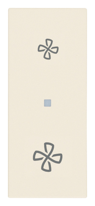Dimmer 120 V~ 60 Hz αποκοπής κύματος για ανεμιστήρες οροφής 15-150 W, έλεγχος ON/OFF και ρύθμιση με ενσωματωμένα πλήκτρα ή από πολλά σημεία με κουμπιά NO, ρύθμιση 4 ταχυτήτων, λειτουργία Superslow, δυνατότητα εντοπισμού στο σκοτάδι, κάνναβη. Η συσκευή δεν μπορεί να εγκατασταθεί σε κουτιά Isoset