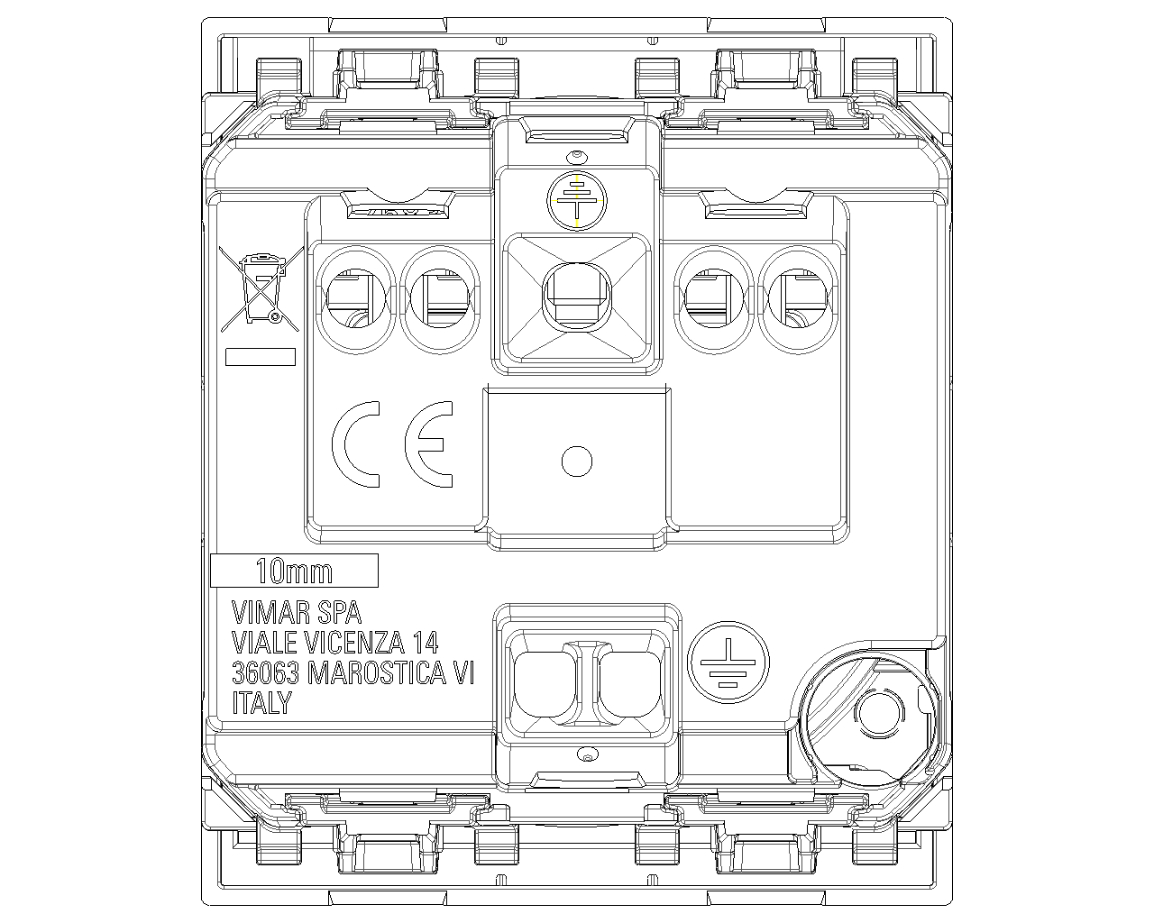 Η Vimar διατηρεί το δικαίωμα τροποποίησης ανά πάσα στιγμή και χωρίς προειδοποίηση των χαρακτηριστικών των προϊόντων που αναφέρονται. Η εγκατάσταση πρέπει να πραγματοποιείται από εξειδικευμένο προσωπικό σύμφωνα με τους κανονισμούς που διέπουν την εγκατάσταση του ηλεκτρολογικού εξοπλισμού και ισχύουν στη χώρα όπου εγκαθίστανται τα προϊόντα. Για τις συνθήκες χρήσης των πληροφοριών που παρέχονται στο δελτίο προϊόντος, βλ. Condizioni di utilizzo.