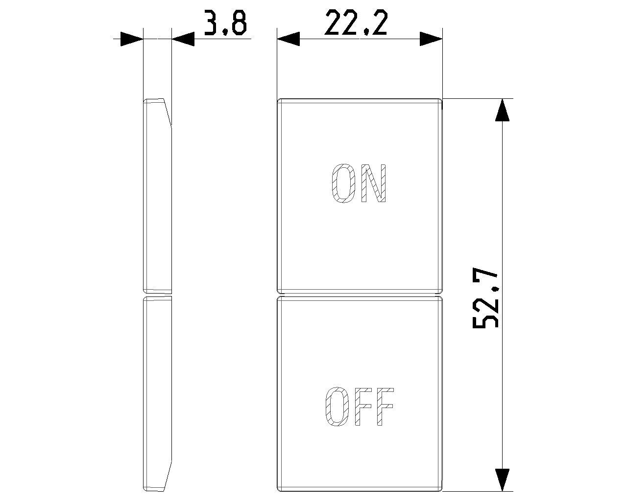 Δύο ανταλλάξιμα μισά πλήκτρα 1 στοιχείου, σύμβολα ON και OFF, λευκά