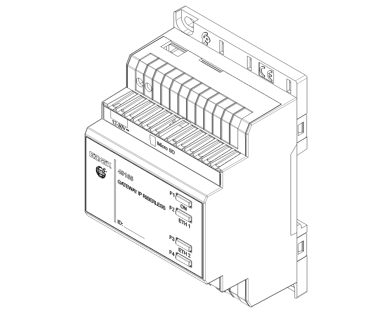 Η πύλη IP για σύστημα θυροτηλεόρασης Riserless, συνδεδεμένη με το νέφος Vimar, επιτρέπει την απομακρυσμένη διαχείριση του συστήματος μέσω ειδικής δικτυακή πύλη και προώθηση κλήσεων σε φορητές συσκευές, εγκατάσταση σε ράγα DIN (60715 TH35), καταλαμβάνει 4 μονάδες 17,5 mm. Διαχειρίζεται έως και 100 άδειες Riserless IP A/V