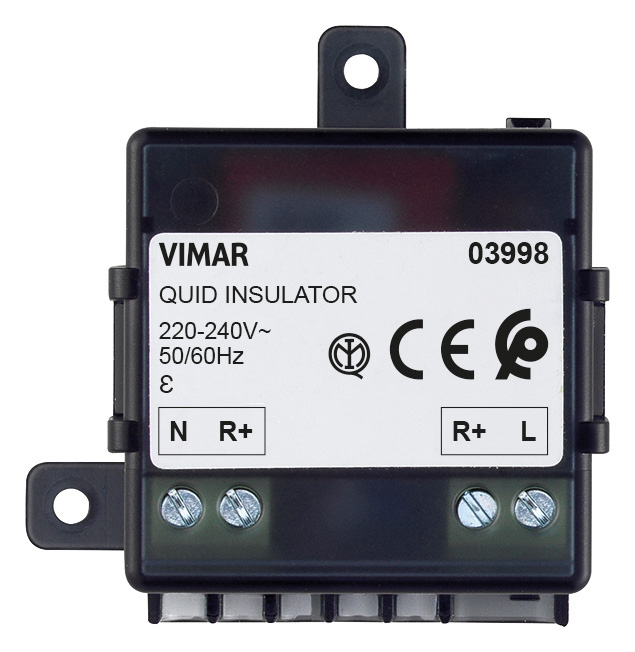 Quid galvanic dividing module, 1 input for NO reset push button from system A (Slave), 1 input for NO reset push button from system B (master), 1 input for system A (slave) neutral, 1 input for system B (master) phase, installation in junction boxes or connector block boxes