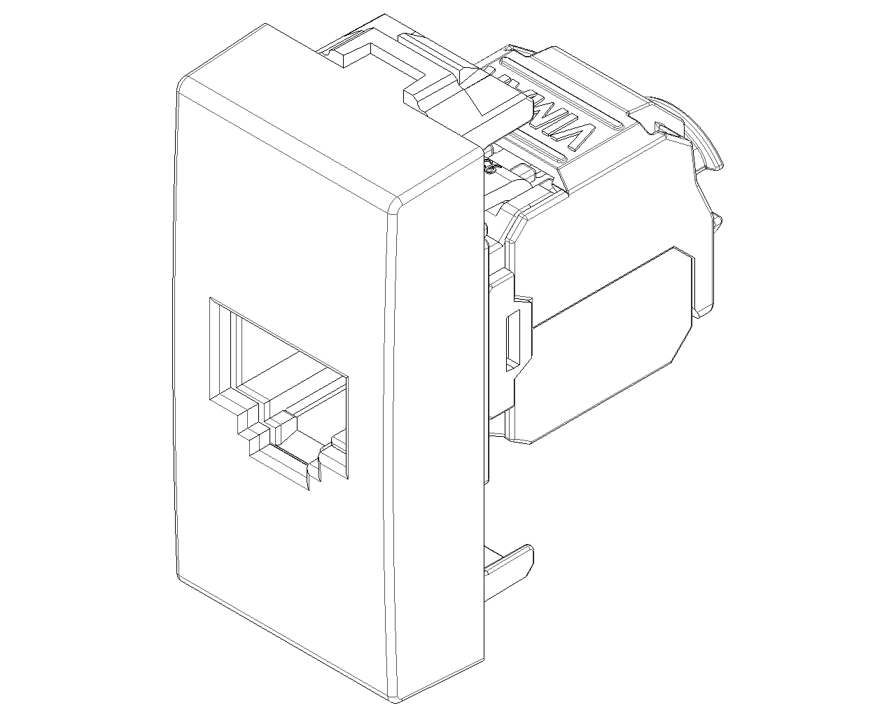 RJ45 socket outlet with Netsafe Cat connector. 6A, shielded, T568A/B universal wiring, 8 contacts, tool-free insulation-piercing terminals, carbon matt