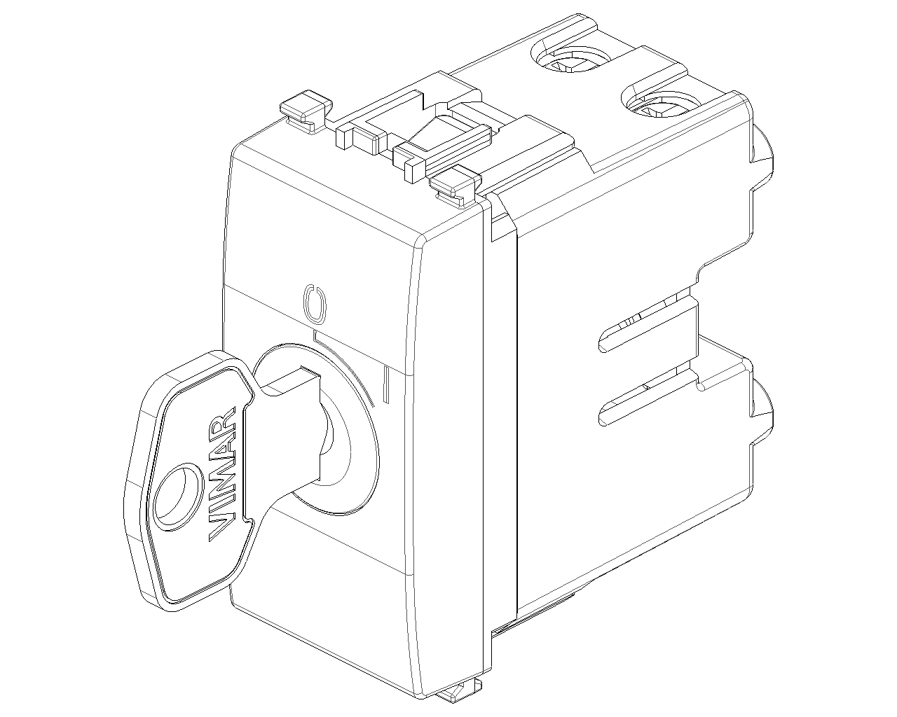 2P 16 AX 250 V~ key-operated 1-way switch, key removable in OFF position only, grey. Max 200 W for self-ballasted lamps (IEC 60669-1:2017)