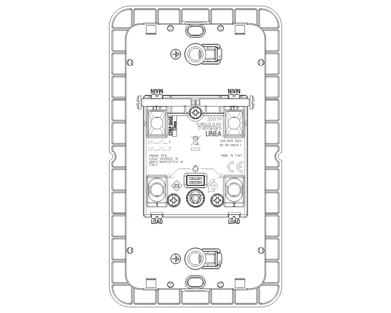 Vimar reserves the right to change at any time and without notice the characteristics of the products reported. Installation should be carried out by qualified staff in compliance with the current regulations regarding the installation of electrical equipment in the country where the products are installed. For the terms of use of the information on the product info sheet see Conditions of Use.
