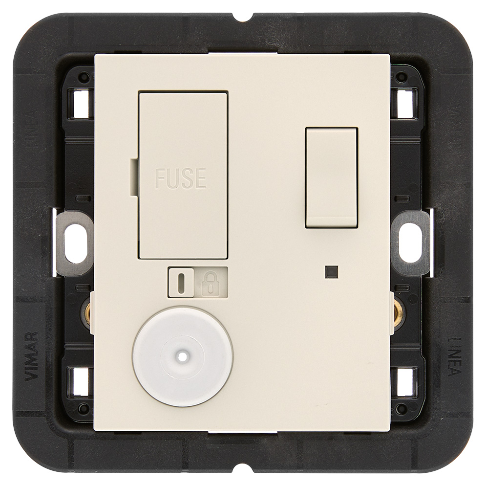 13 A 250 V~ connection unit with 2P 1-way switch with pilot light, cable output, protection fuse complete with mounting frame for installation in square BS mounting boxes, to be completed with BS 3-module cover plate, canvas