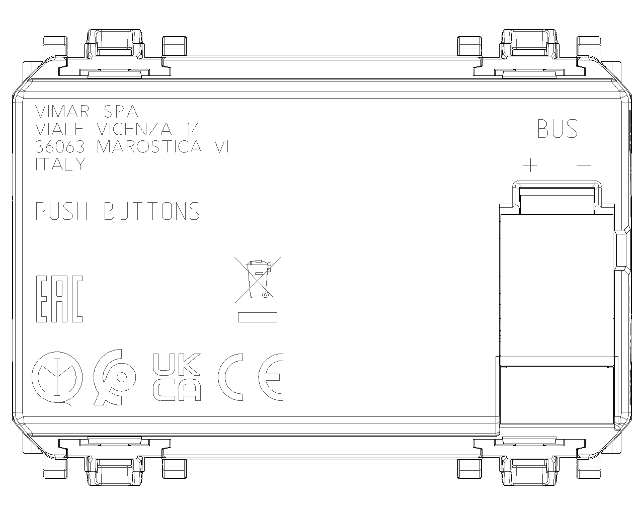 Vimar reserves the right to change at any time and without notice the characteristics of the products reported. Installation should be carried out by qualified staff in compliance with the current regulations regarding the installation of electrical equipment in the country where the products are installed. For the terms of use of the information on the product info sheet see Conditions of Use.