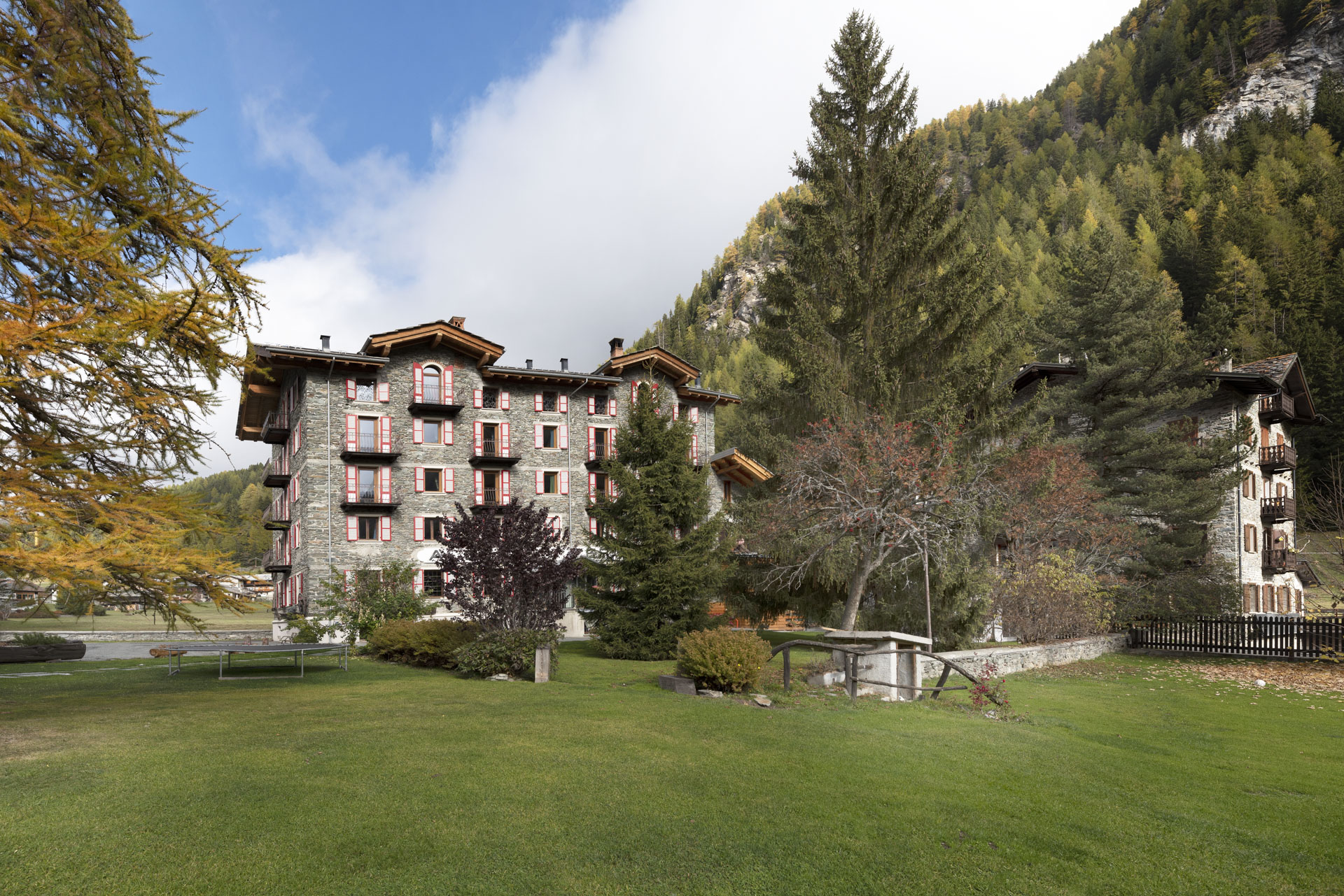 "At the foot of Monte Rosa, in the heart of the Val d’Ayas, stands the imposing Hotel Monte Cervino. Built in 1930 on the initiative of Alessandro Favre, at a time when Champoluc was becoming a popular summer tourist destination, the building's architecture is a fine example of traditional Alpine style that integrates perfectly with the surrounding landscape."