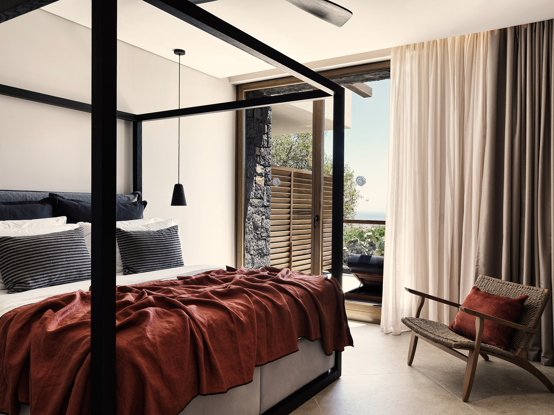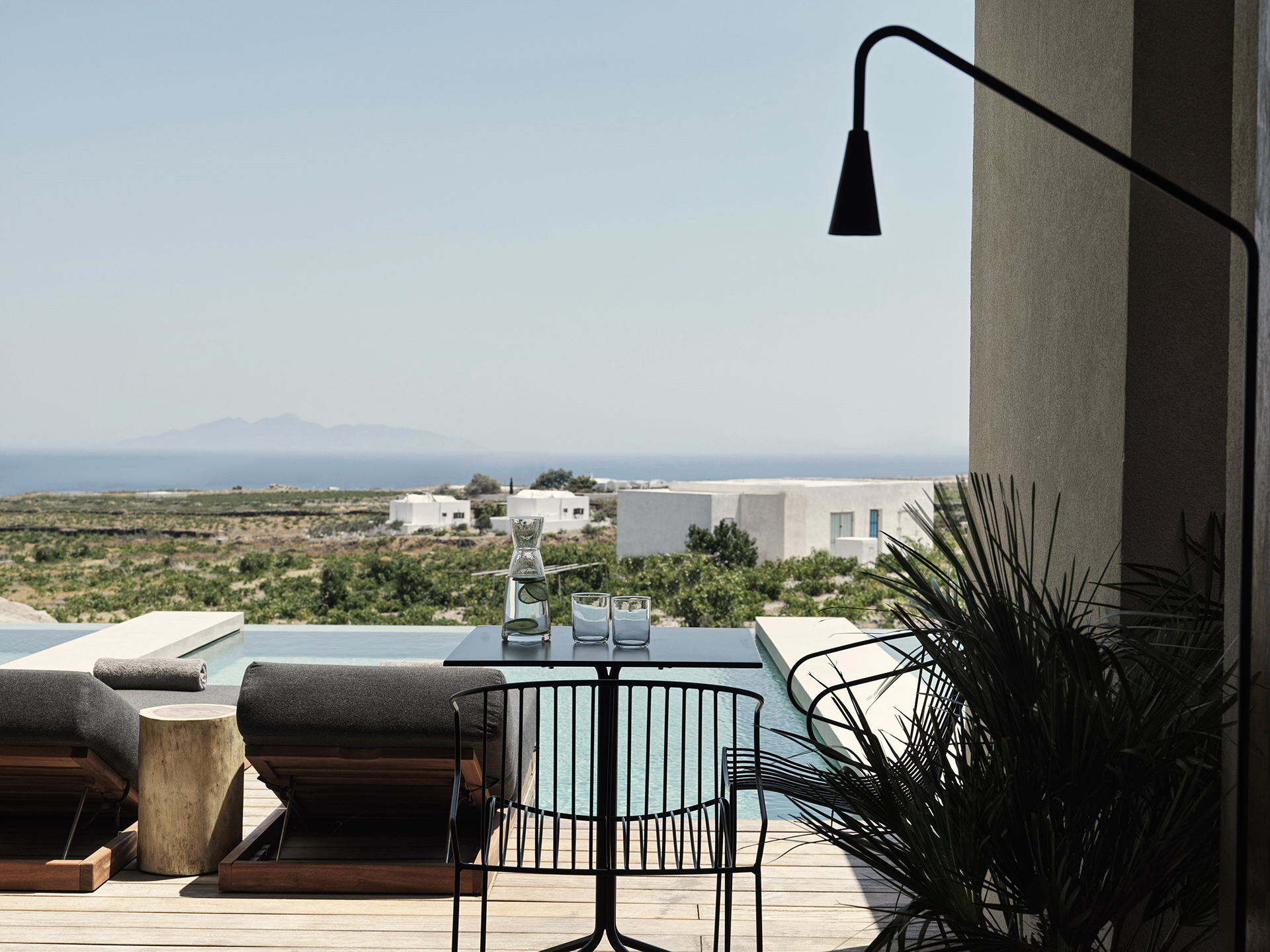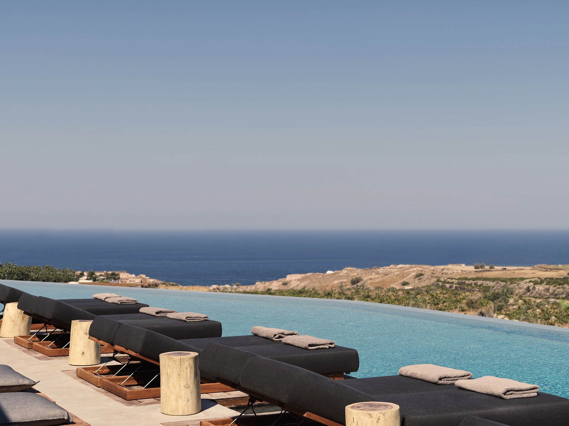 Designed by Studio People, the complex pays homage to the island's authentic beauty, drawing inspiration from the majestic volcano that shaped its landscape. Nestled among the traditional pezoules - the characteristic cultivated terraces that follow the natural contours of the land - it stands out for its ability to blend architecture and nature seamlessly. The local stone walls not only define the landscape but also create intimate and evocative spaces, designed to offer guests an immersive experience that strikes the perfect balance with the surrounding environment and the rich cultural heritage of the area.