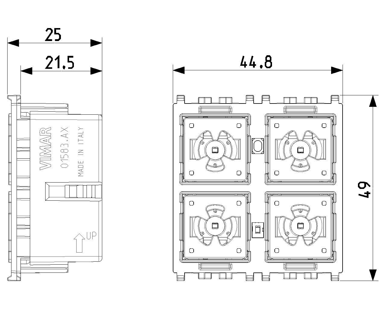 Vimar se reserva el derecho de cambiar en cualquier momento y sin previo aviso las características de los productos reportados. La instalación debe ser realizada por personal cualificado cumpliendo con las disposiciones en vigor que regulan el montaje del material eléctrico en el país donde se instalen los productos. Para las condiciones de uso de la información de la ficha del producto, consulte Condiciones de uso.