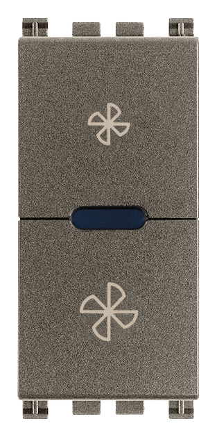 Variador de 120 V~ 60 Hz con corte de fase para ventiladores de 15-150 W, mando ON/OFF y regulación con pulsadores incorporados o desde varios puntos con pulsadores NO, regulación de 4 velocidades, función Superslow, visibilidad en la oscuridad, metal. Aparato no instalable en cajas Isoset