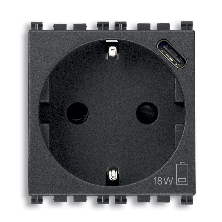 Toma SICURY 2P+T 16A DE+USBC 18W gris