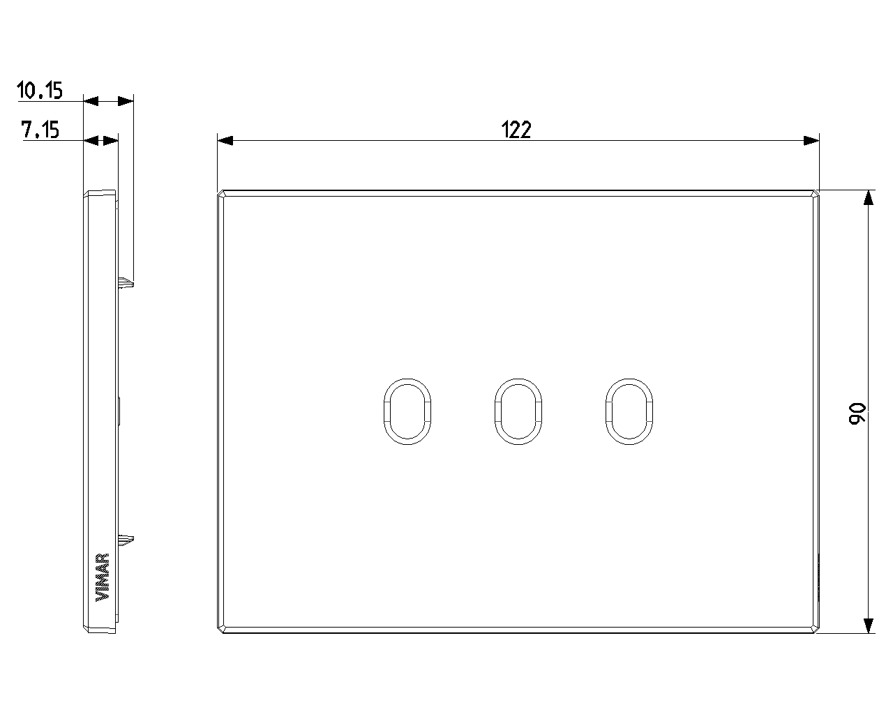Placa 3 módulos para tres mandos Vintage, metal, oro satinado