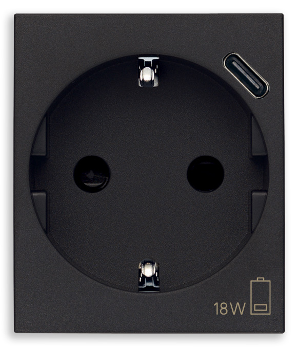 Toma SICURY 2P+T 16A DE+USBC 18W negro