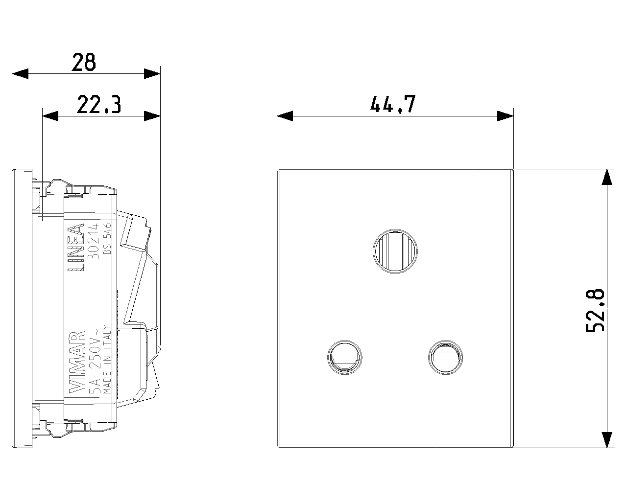 Toma de corriente SICURY 2P+T 5 A 250 V~, estándar inglés, blanco - 2 módulos