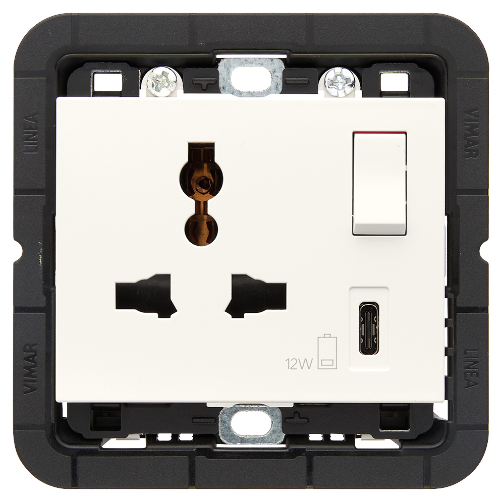 Toma SICURY 2P+T13A mult.+USB C blanco