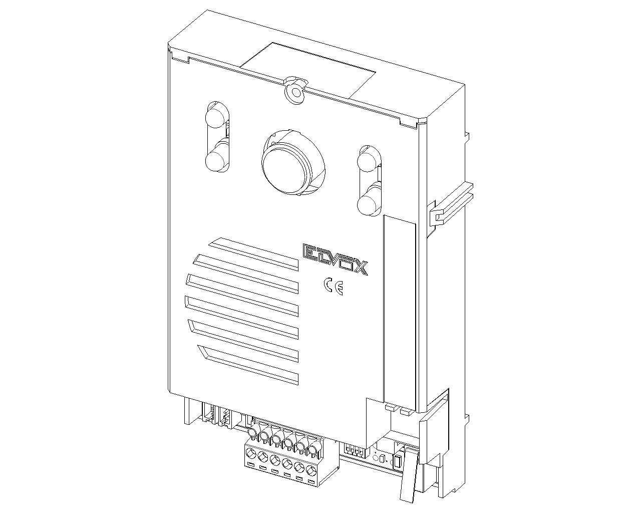 Unidad electrónica Due Fili Plus para placa audio/vídeo en color, con objetivo fijo gran angular 100°/82° horizontal/vertical, 1 pulsador incorporado, para utilizar en instalaciones Due Fili con placas 40151 y 40152