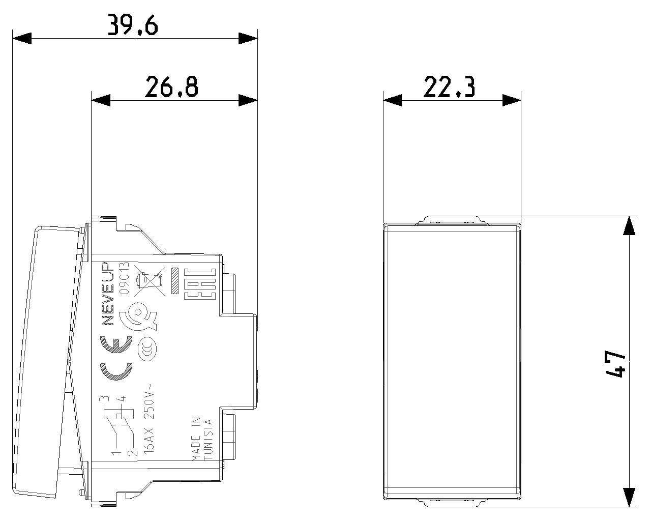 Inverseur 1P 16 AX 250 V~, blanc. Maxi 200 W pour lampes autoballastées (CEI 60669-1:2017)