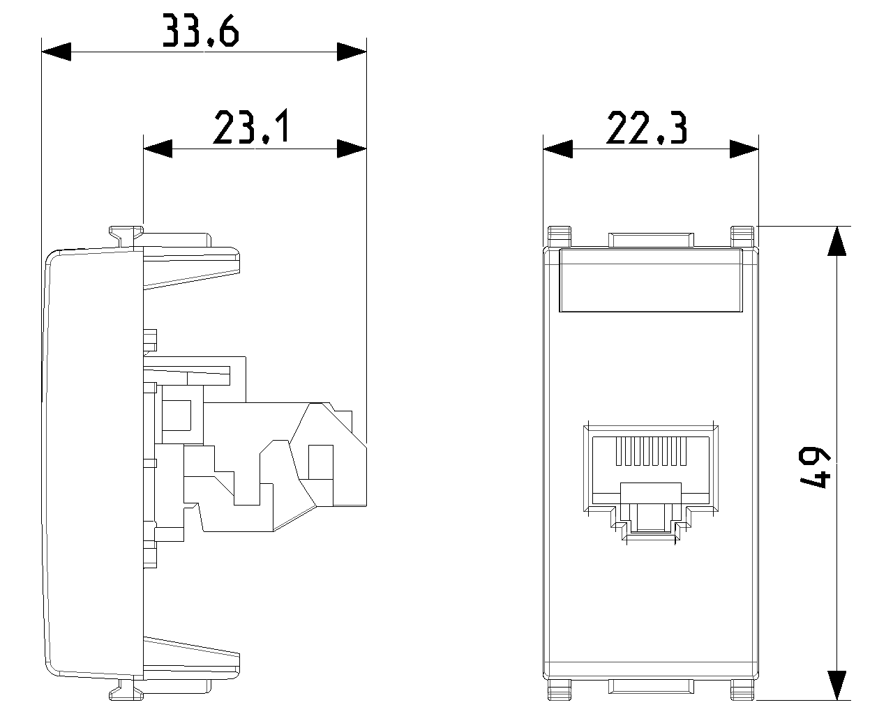 Prise RJ45 avec connecteur Netsafe, Cat. 5e, non blindée, câblage universel T568A/B, 8 contacts, bornes autodénudantes sans l'utilisation d'outil, Silver