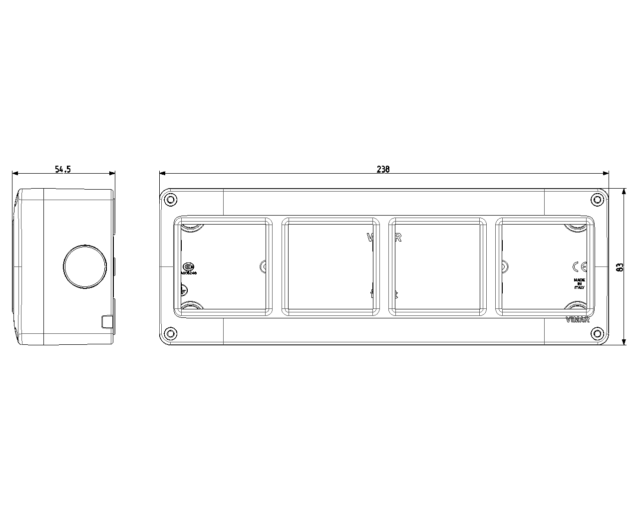 Enveloppe pour pose en saillie IP40, 8 (2+2+2+2) modules Eikon et Plana, appareils à fixation horizontale et verticale
