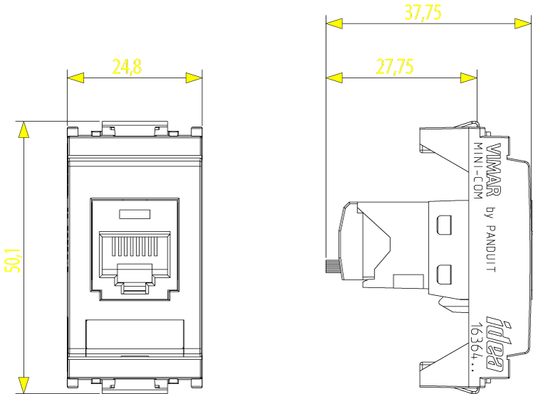 Prise RJ45 avec connecteur Panduit (MINI-COM), Cat. 5e, non blindée, câblage universel T568A/B, 8 contacts, bornes autodénudantes, blanc