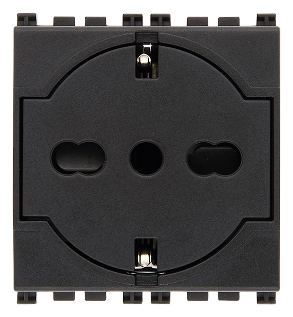 Prise SICURY 2P+T 16 A 250 V~ universelle standard italien P40 filaire, gris - 2 modules