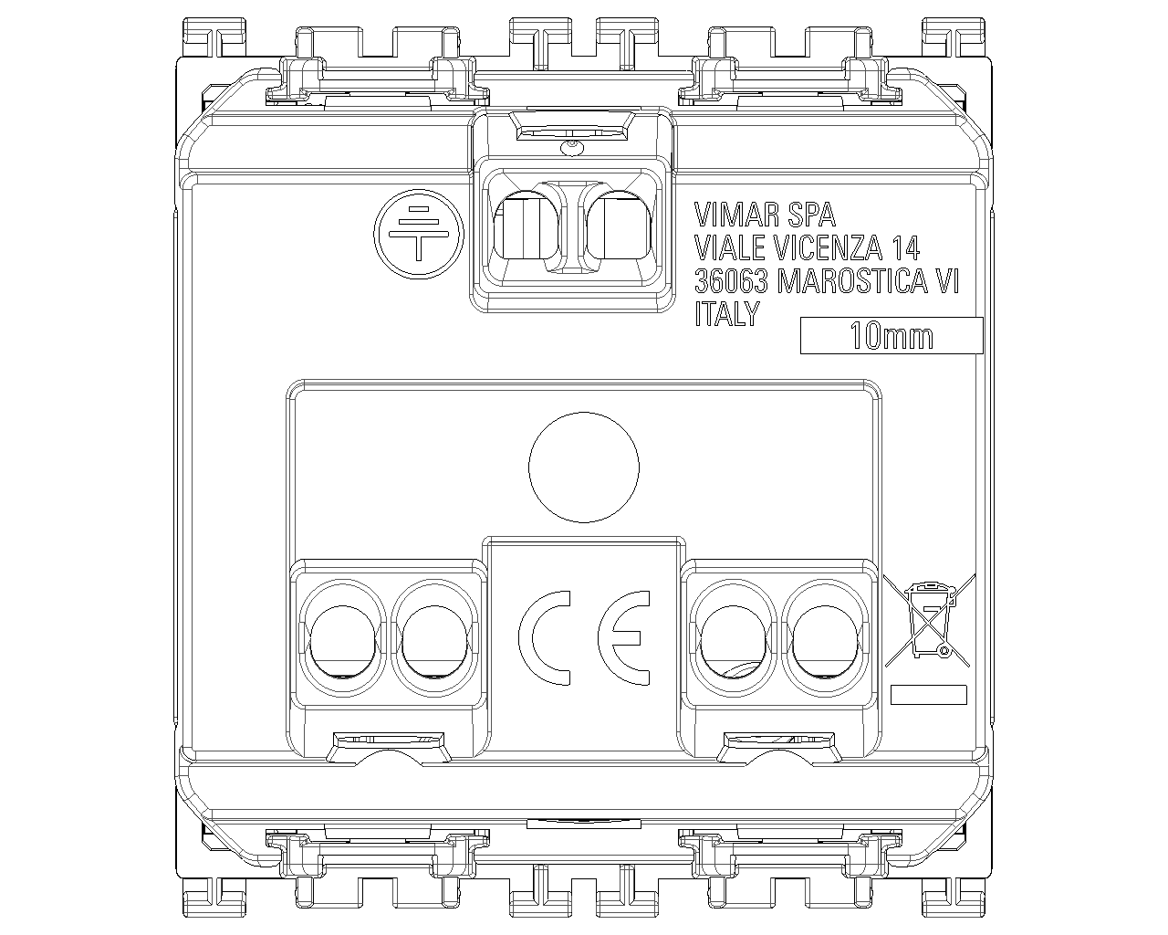 Vimar se réserve le droit de modifier les caractéristiques des produits à tout moment et sans préavis. L'installation doit être confiée à des techniciens qualifiés et exécutée conformément aux dispositions qui régissent l'installation du matériel électrique en vigueur dans le pays concerné. Pour les conditions d'utilisation des informations données sur la fiche produit, consulter Conditions d'utilisation.