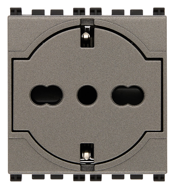 Prise SICURY 2P+T 16 A 250 V~ universelle standard italien P40 filaire, métal - 2 modules