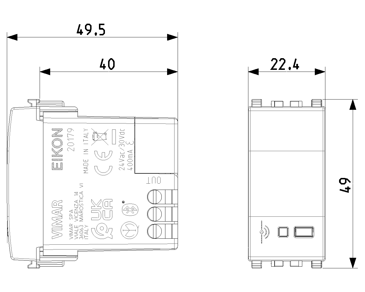 Vimar se réserve le droit de modifier les caractéristiques des produits à tout moment et sans préavis. L'installation doit être confiée à des techniciens qualifiés et exécutée conformément aux dispositions qui régissent l'installation du matériel électrique en vigueur dans le pays concerné. Pour les conditions d'utilisation des informations données sur la fiche produit, consulter Conditions d'utilisation.