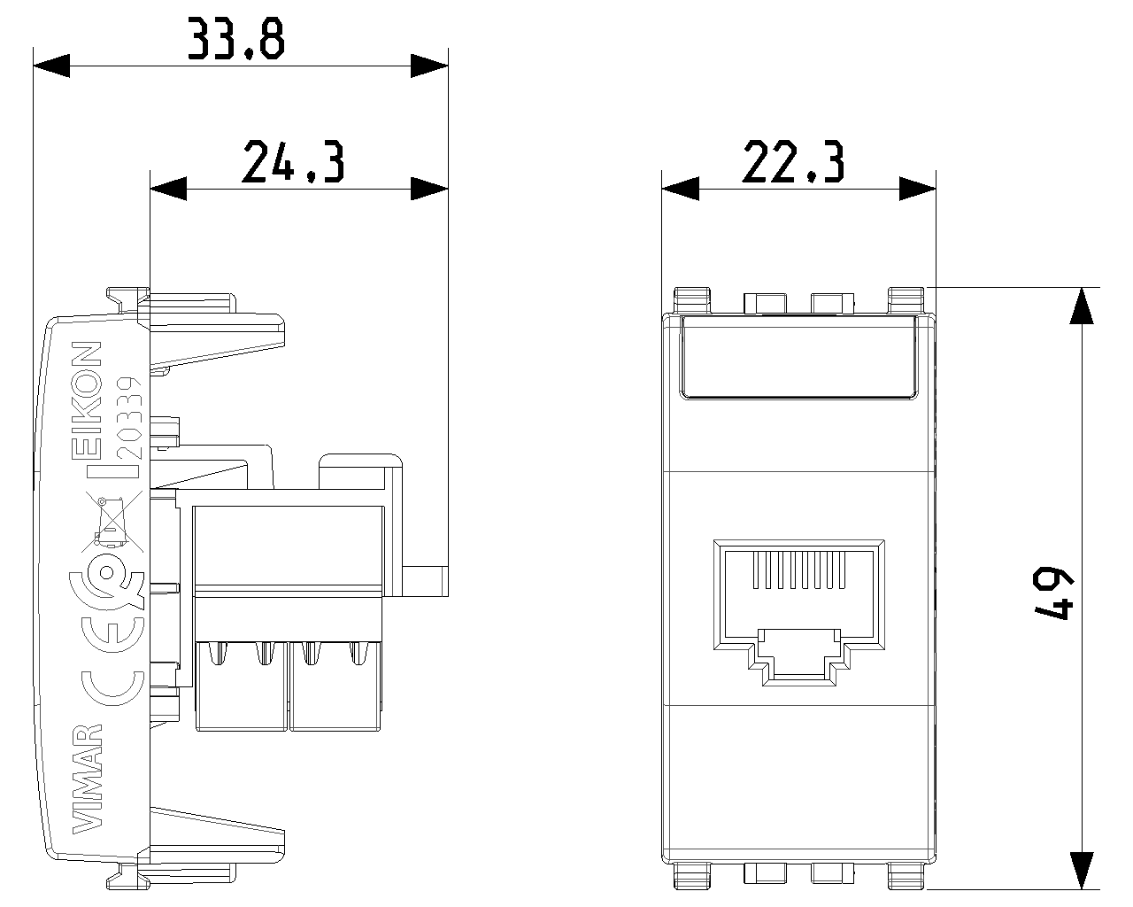 Vimar se réserve le droit de modifier les caractéristiques des produits à tout moment et sans préavis. L'installation doit être confiée à des techniciens qualifiés et exécutée conformément aux dispositions qui régissent l'installation du matériel électrique en vigueur dans le pays concerné. Pour les conditions d'utilisation des informations données sur la fiche produit, consulter Condizioni di utilizzo.