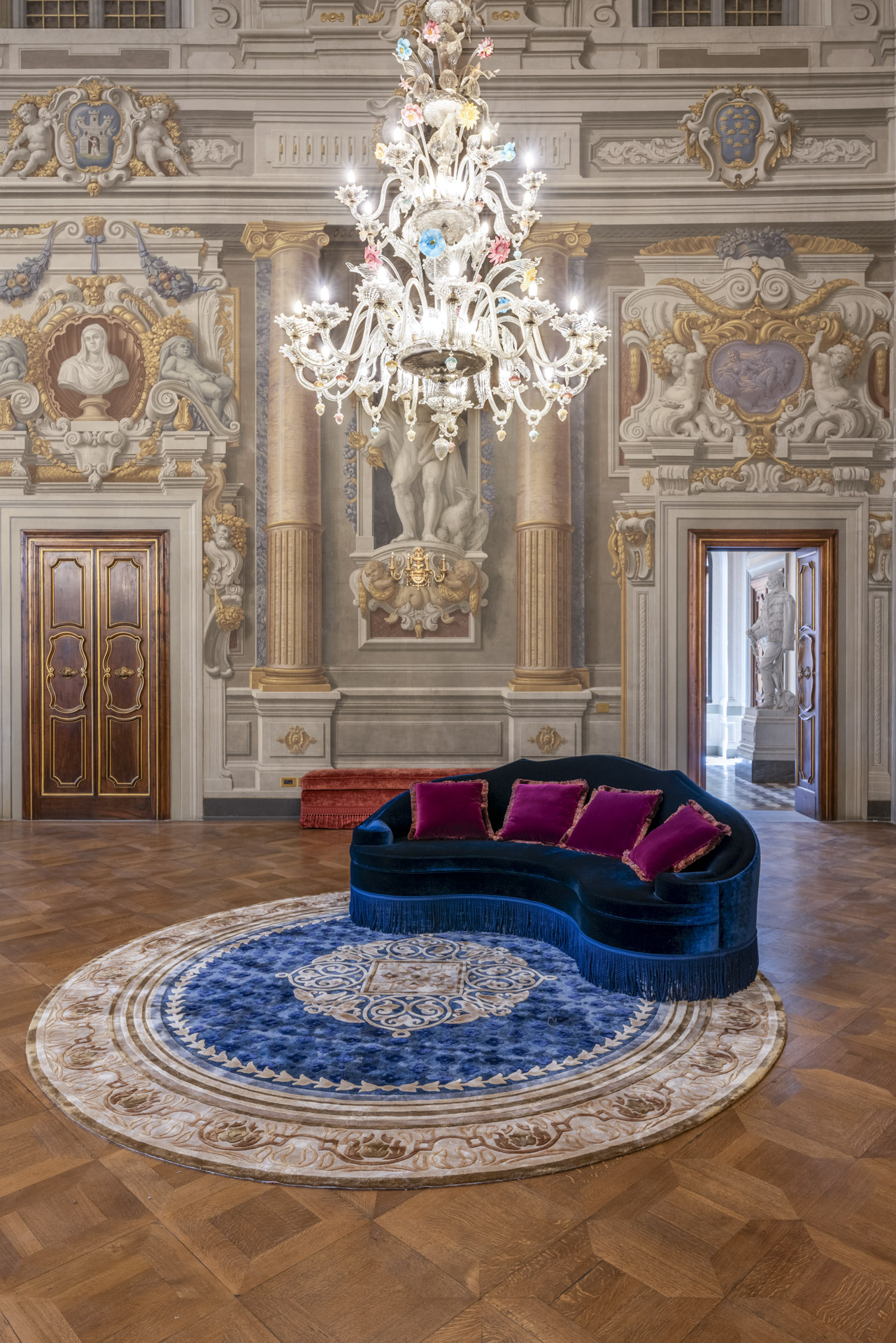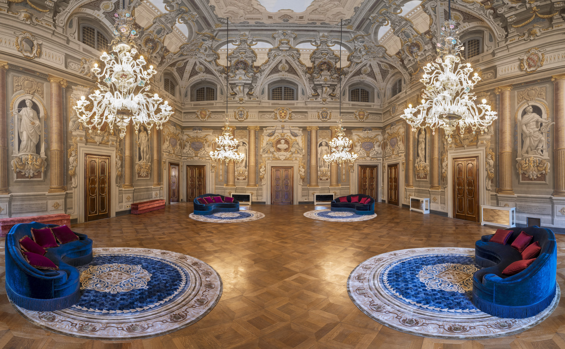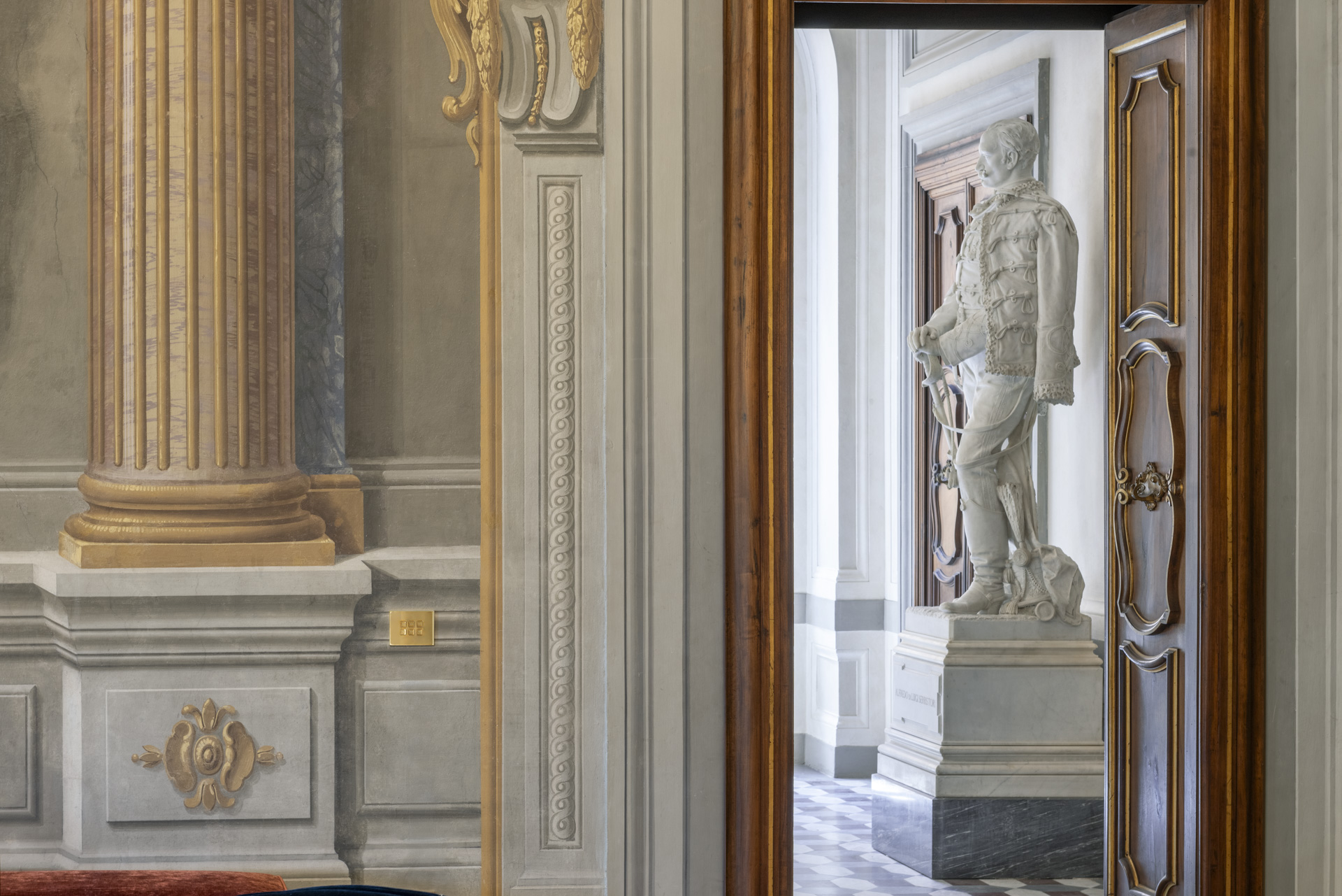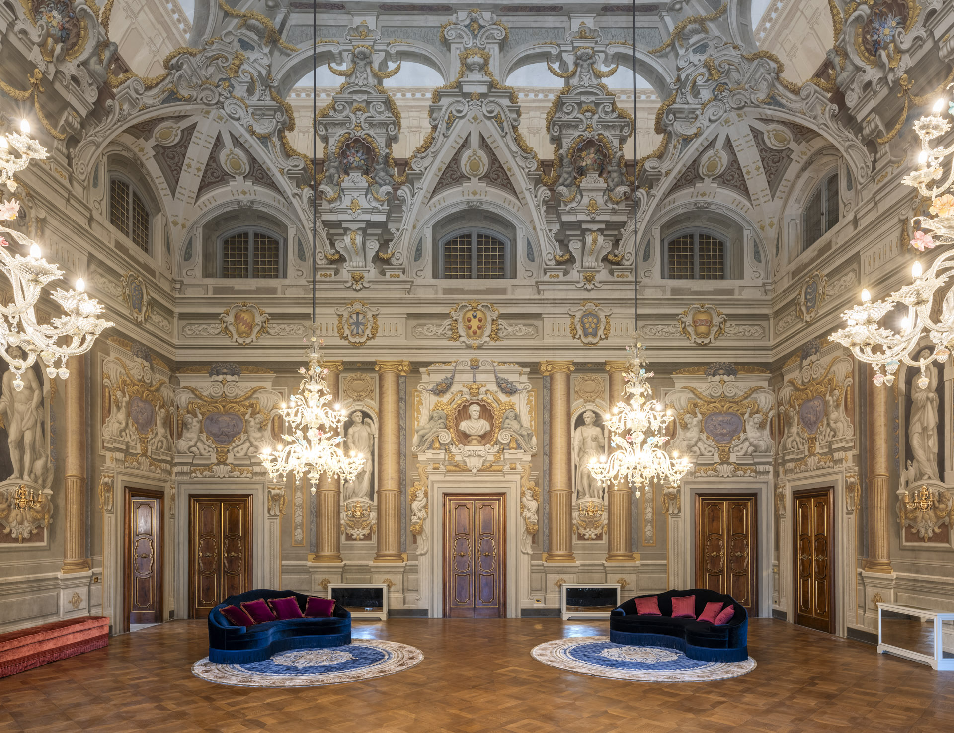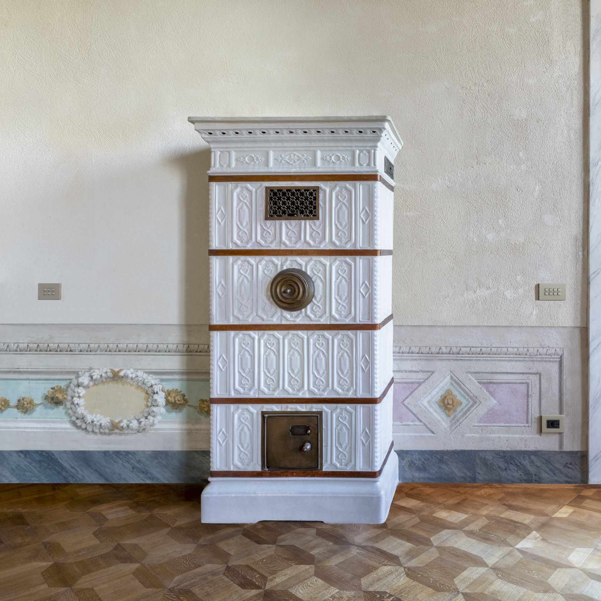 Aujourd'hui, après une restauration minutieuse menée par l'architecte Adriana Novelli - AnDesignteam Srl - la demeure historique répartie sur 5 étages et couvrant une superficie totale de 5 800 m2 avec un parc de plus de 3 000 m2, est devenue un complexe exclusif comprenant 12 appartements de luxe allant de 1 700 à 500 m2. Les plafonds et les murs décorés de fresques, les cheminées en marbre, la grande salle de bal, avec les premiers lustres en verre coloré de Murano, la somptueuse salle des glaces et un très rare poêle en terre cuite émaillée, racontent un passé glorieux, soigneusement préservé dans les moindres détails.
