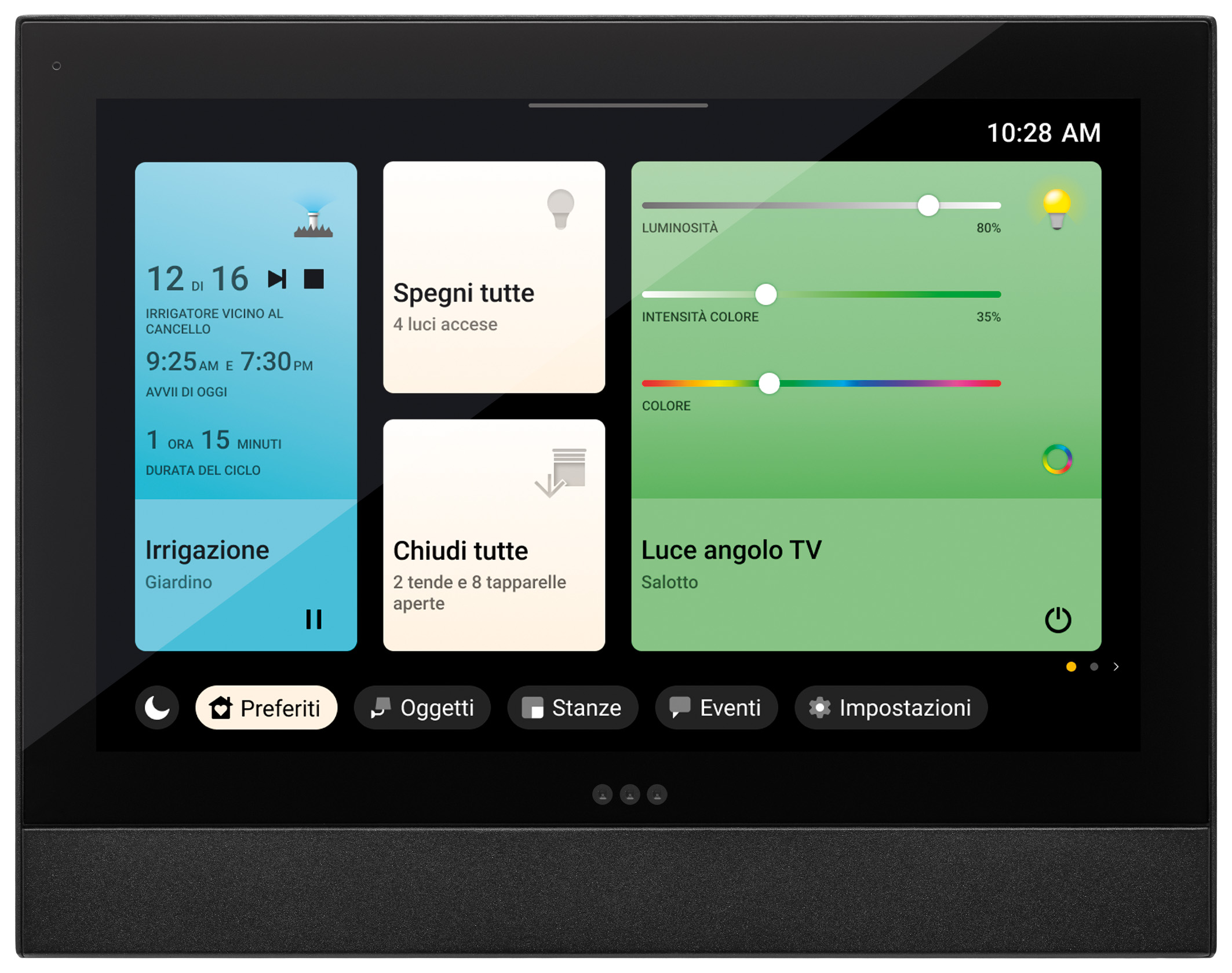 Supervisore IP con display touch da 7˝ in formato 16:10 (1280×800), dotato di sensore di prossimità, sensore di luminosità ambientale e LED RGB di segnalazione, per notifiche di stato. Consente il controllo dei sistemi By-me Plus, View Wireless, By-alarm Plus, Elvox Videocitofonia IP e Due Fili Plus tramite i relativi gateway d’impianto, oltre alla visualizzazione live di telecamere Elvox TVCC IP e Wi-Fi tramite stringhe RTSP. Alimentazione PoE o 24–30 Vdc. Installazione a parete con staffa su scatola 2M, quadrata BS, rettangolare 3M orizzontale e verticale, nero