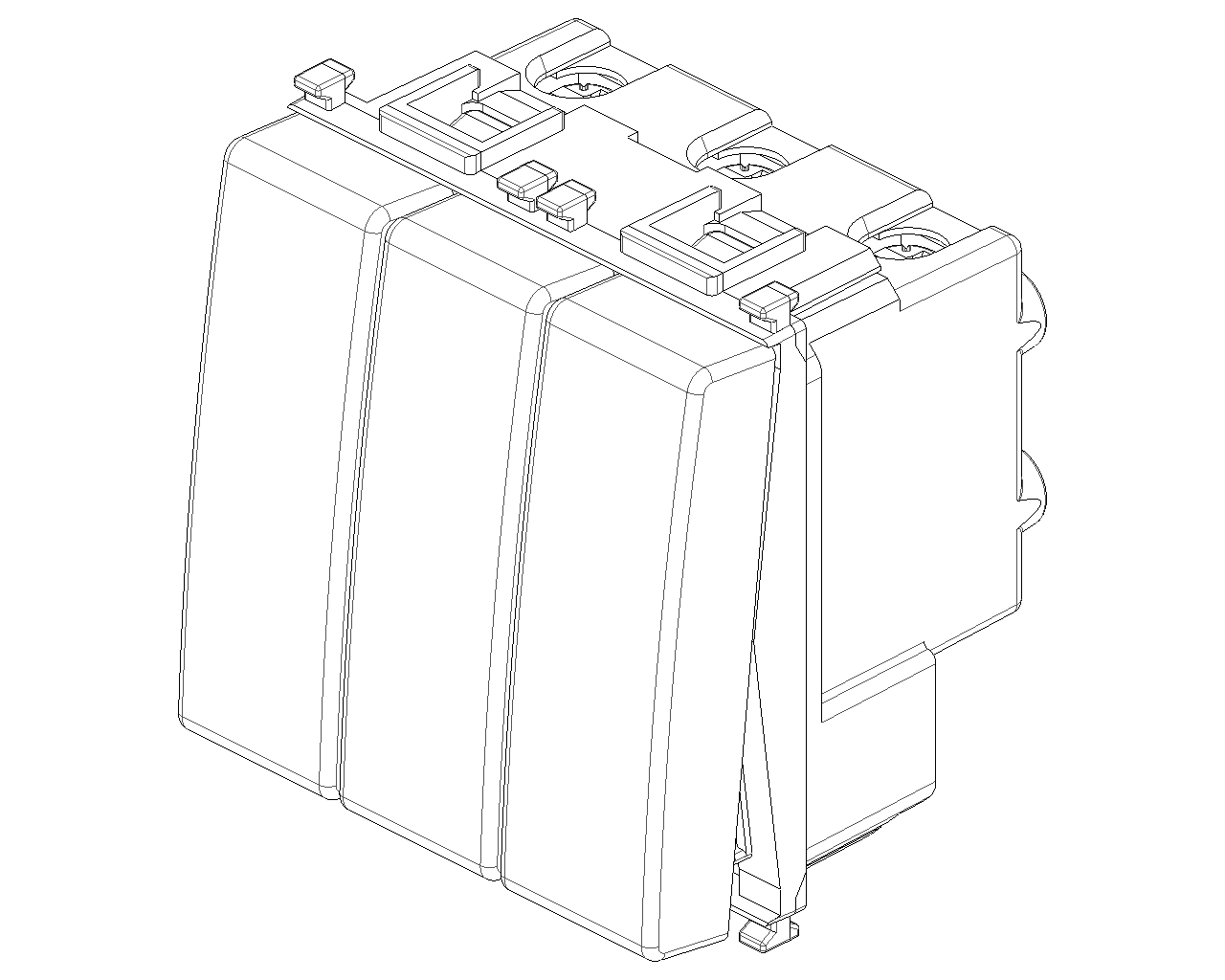 Tre interruttori indipendenti 1P 20 AX 250 V~, illuminabili, bianco - 2 moduli. Max 250 W per lampade con alimentatore integrato (IEC 60669-1:2017)
