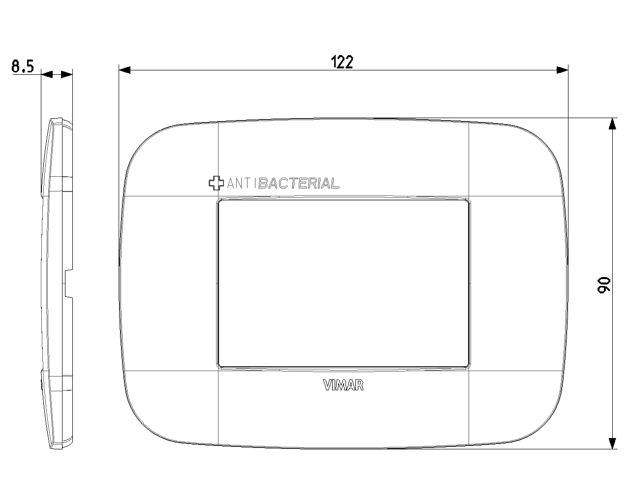 Placca Round 3 moduli, tecnopolimero, materiale antibatterico, nero