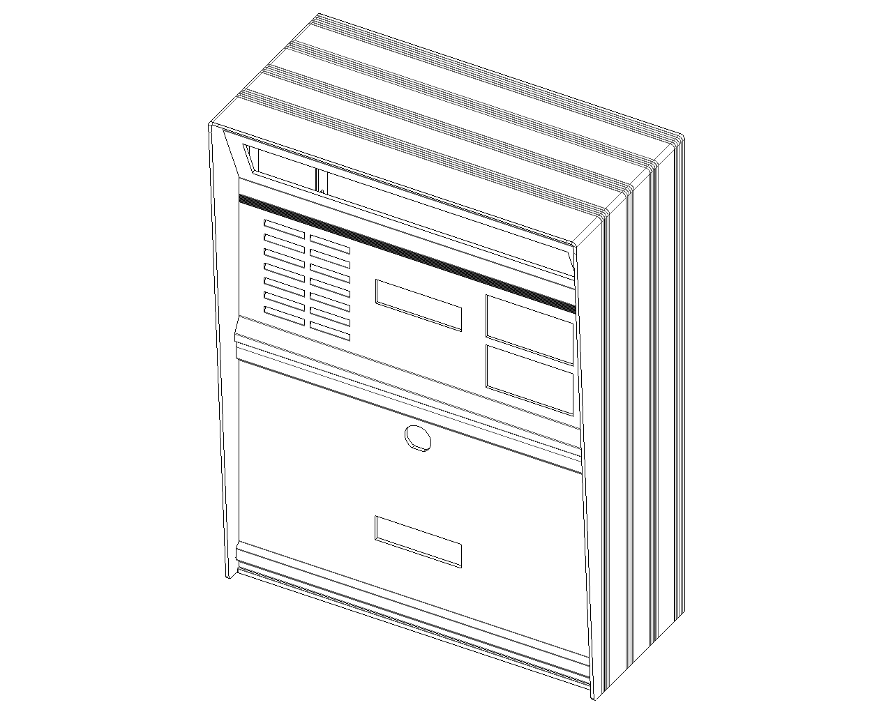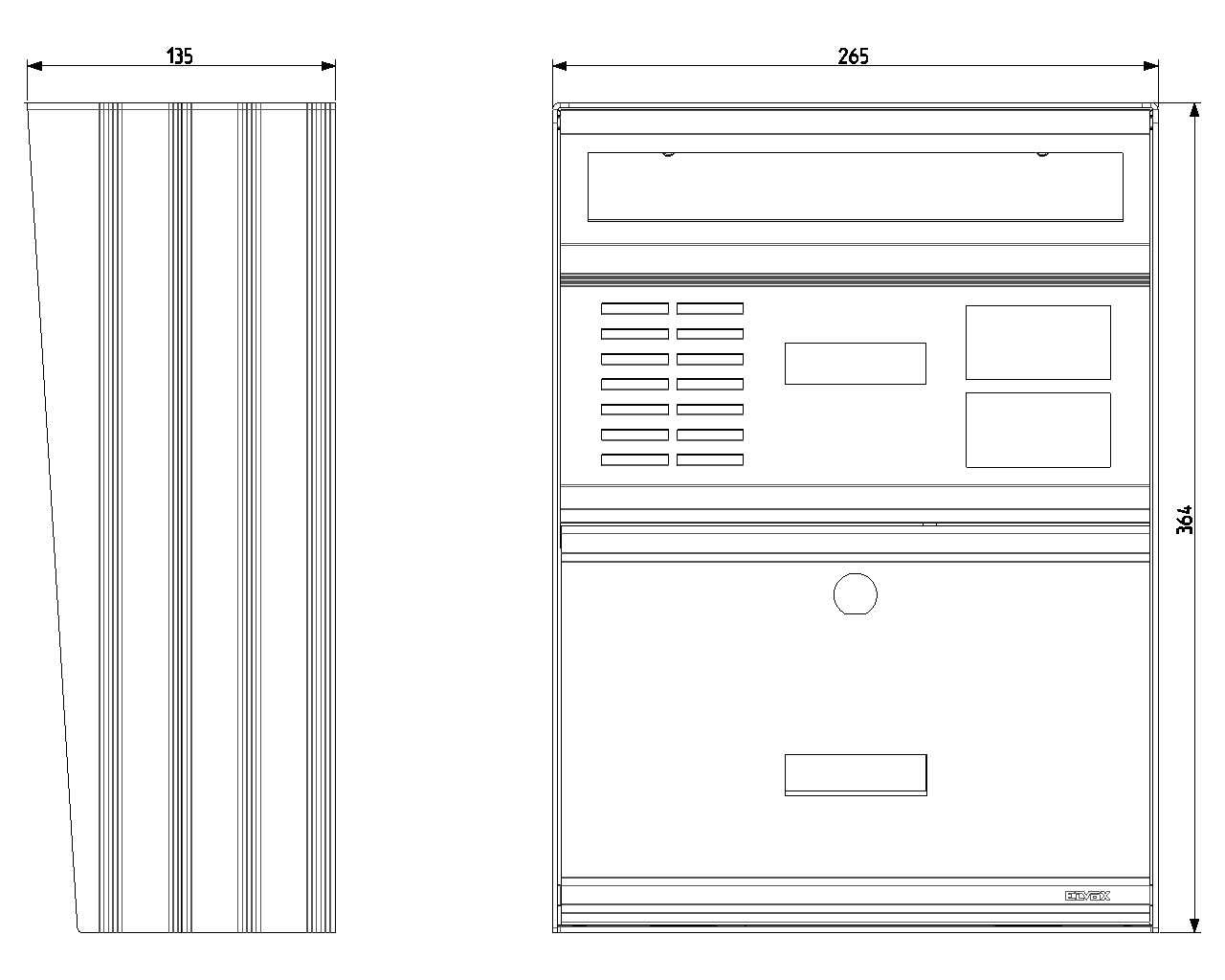Targa portalettere con apertura anteriore e posteriore con 1 pulsante, attacco per unità elettronica audio 6931 (Due Fili) o serie 930 (Sound System) e unità elettronica video 6570, 657C (Due Fili) o 0570 (Sound System), alluminio anodizzato naturale