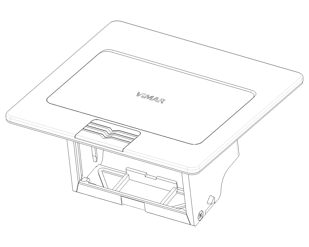 Torretta da pavimento per apparecchi Eikon, Arké, Plana per installazione su scatola V54903. Fornita con apposito supporto per installazione su pavimento flottante.