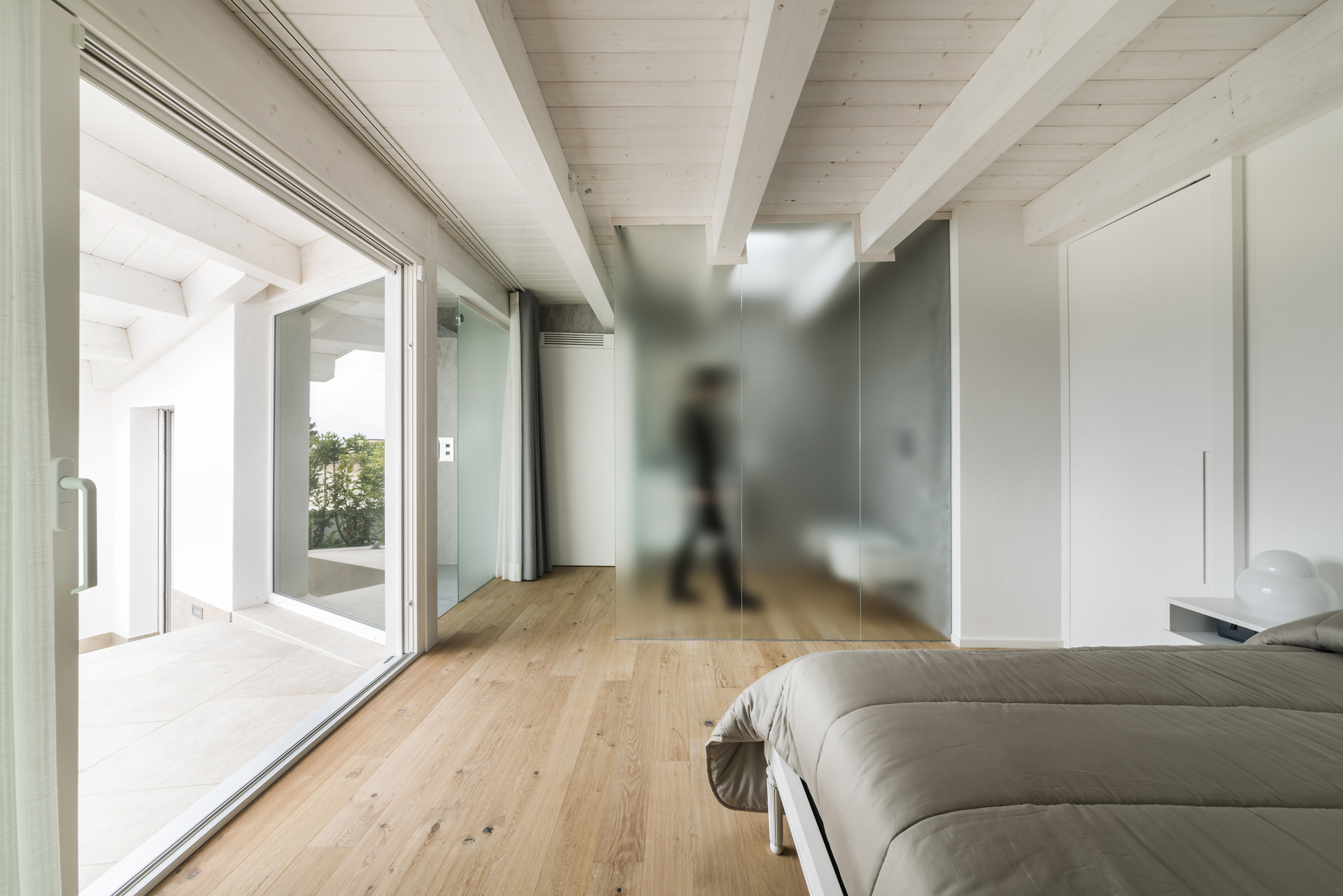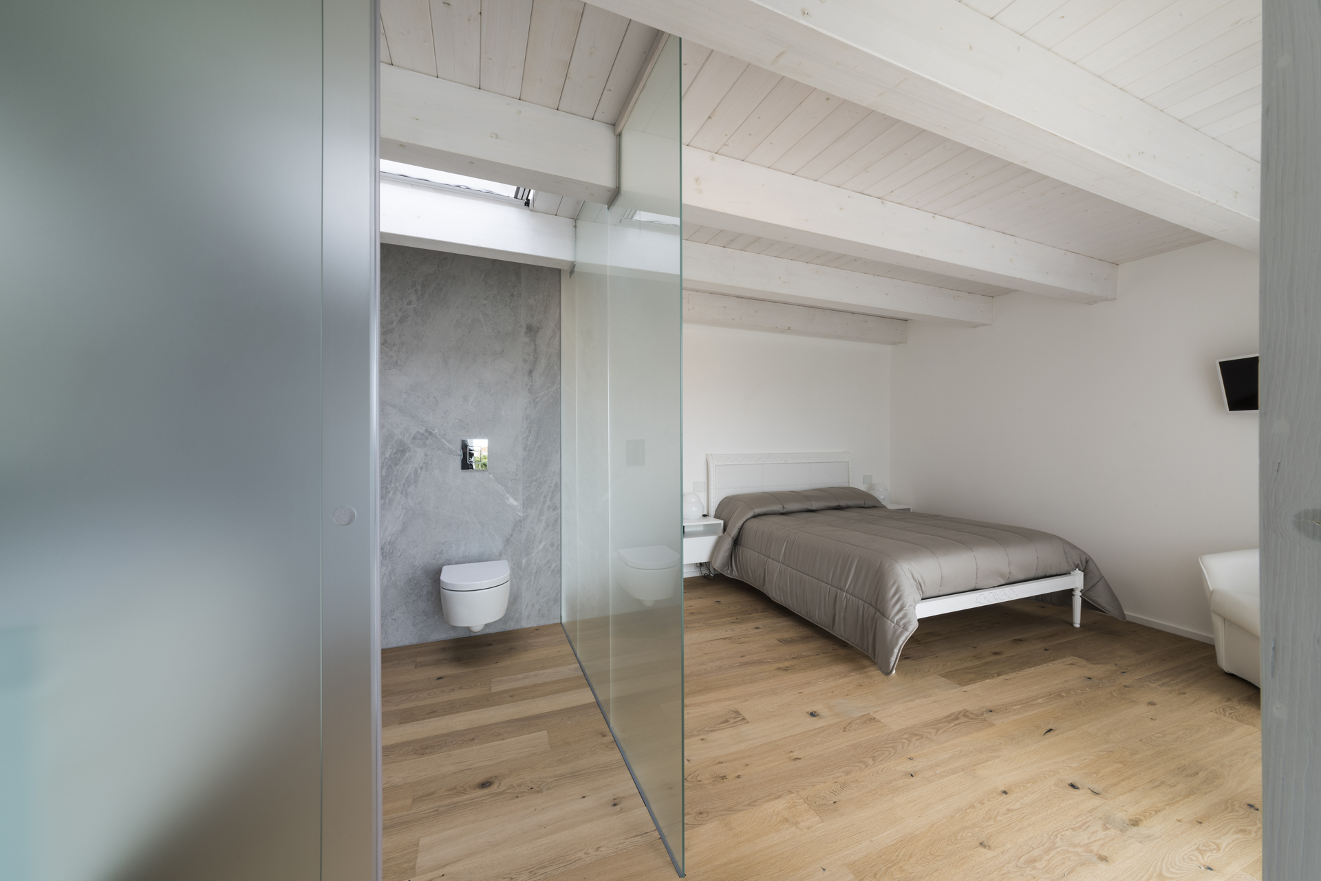 Un senso di libertà che si ritrova anche nella scelta dei dispositivi di comando dell’energia elettrica. Infatti sia nella zona giorno che nella zona notte si è optato per la leggerezza dei dispositivi Eikon Tactil di Vimar. Una superficie in vetro liscia e luminosa che sporge di pochi millimetri dal muro che contribuisce a mantenere il senso di continuità tra gli spazi. Sotto questo elegante materiale trovano posto i comandi domotici di Vimar. Da qui, accendere, spegnere o regolare l’intensità delle lampade diventa un gesto ricco di eleganza. Appena la superficie di Tactil viene sfiorata, infatti, un sensore proximity rileva la vicinanza al dispositivo e attiva la sua retroilluminazione. Così per azionarlo basta un lieve tocco, che la raffinata tecnologia touch trasforma in controllo diretto dell’energia.