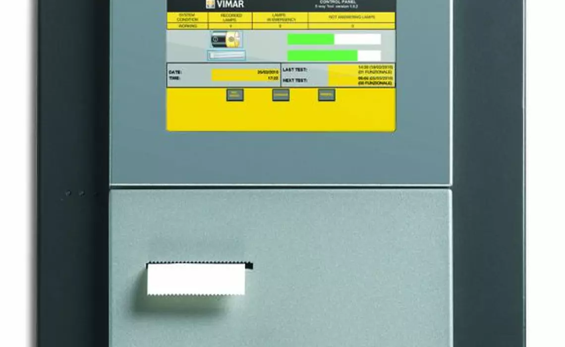 Il sistema centralizzato E-way Test – disponibile anche su standard KNX e integrabile con Well-contact Suite, il software Vimar di supervisione per la building automation - consente di gestire e supervisionare, anche da postazione remota, le lampade di emergenza e segnalazione. La centrale E-way Test - da parete o per barra DIN – consente la configurazione di tutte le lampade dell’impianto attribuendo ad ognuna di esse i parametri e le funzionalità di test desiderate in maniera che il sistema di illuminazione di emergenza sia mantenuto ai migliori livelli di efficienza; gestisce e memorizza tutte le informazioni assicurando così una completa supervisione di tutto l’impianto e una precisa e puntuale manutenzione. Dalla stampante, integrata o collegata alla centrale, è poi possibile stampare il report dei test effettuati sull’impianto.